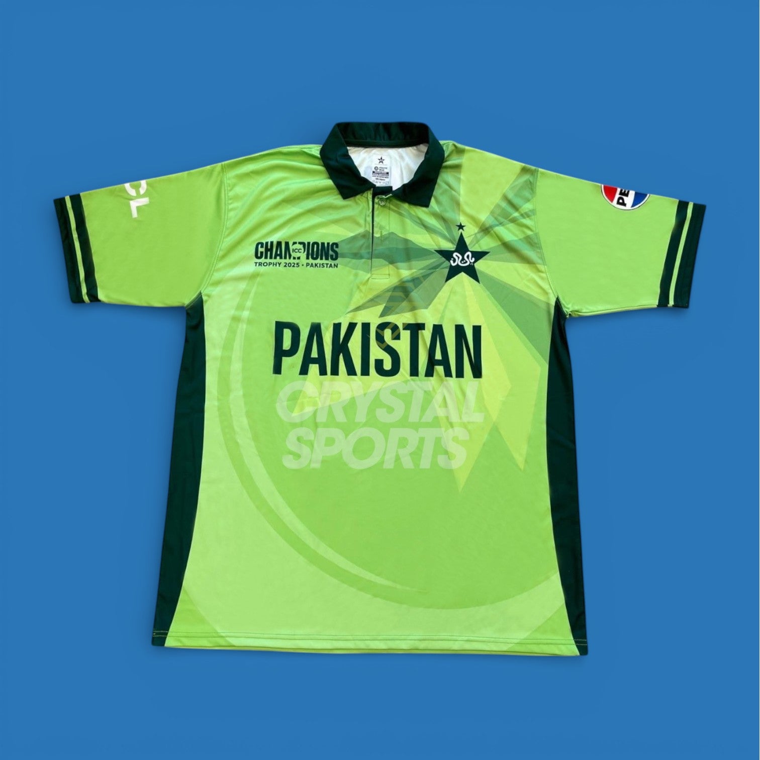 Get ready for the 2025 ICC Champions Trophy with the Pakistan replica jersey, available exclusively at Crystal Sports. This fan jersey is perfect for showing your support throughout the tournament, whether you're at the stadium or watching from home.