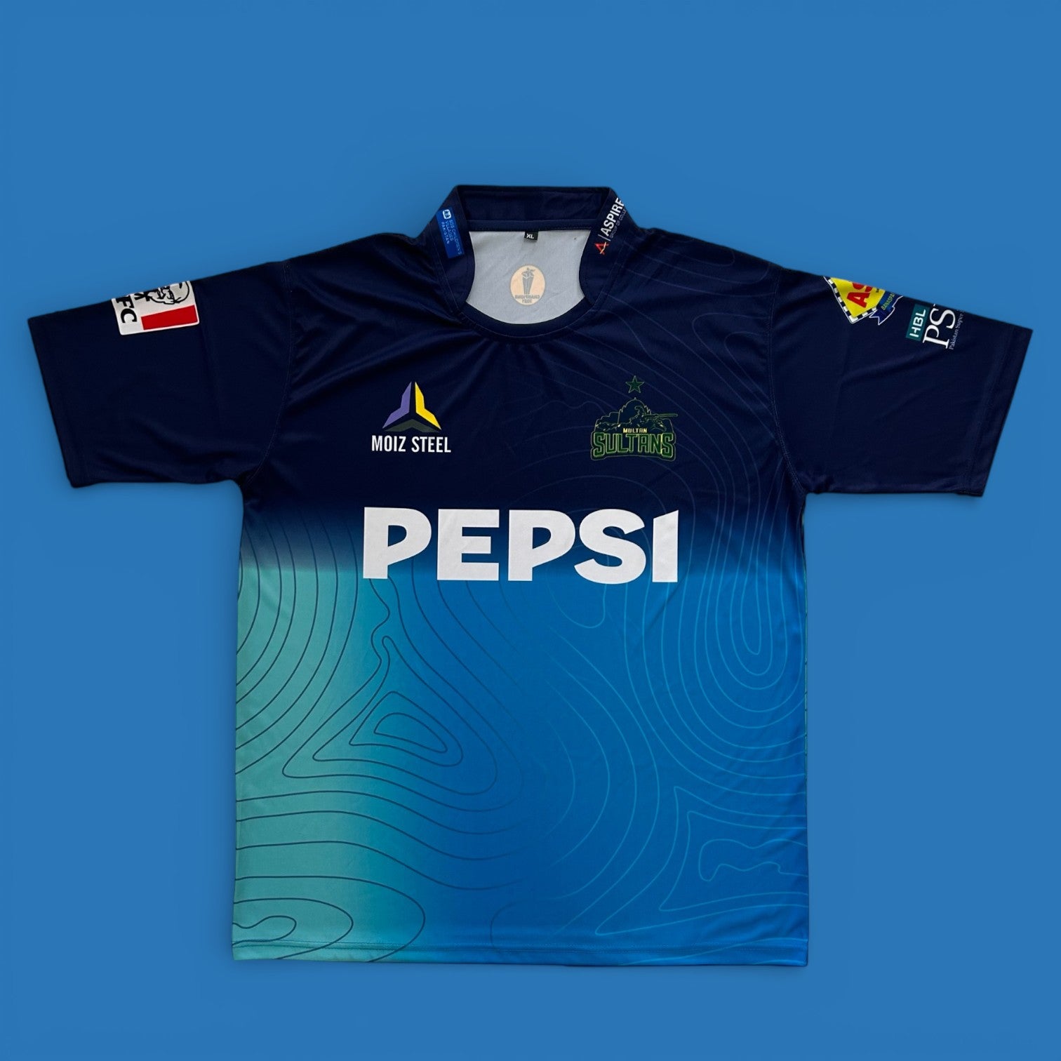 Support Multan Sultans with the official team jersey, designed for ultimate comfort and performance. Constructed from lightweight, breathable fabric, it keeps you cool under pressure. The striking green and blue design features the Sultans' emblem, reflecting the team's spirit and tenacity. Ideal for dedicated fans and cricket enthusiasts